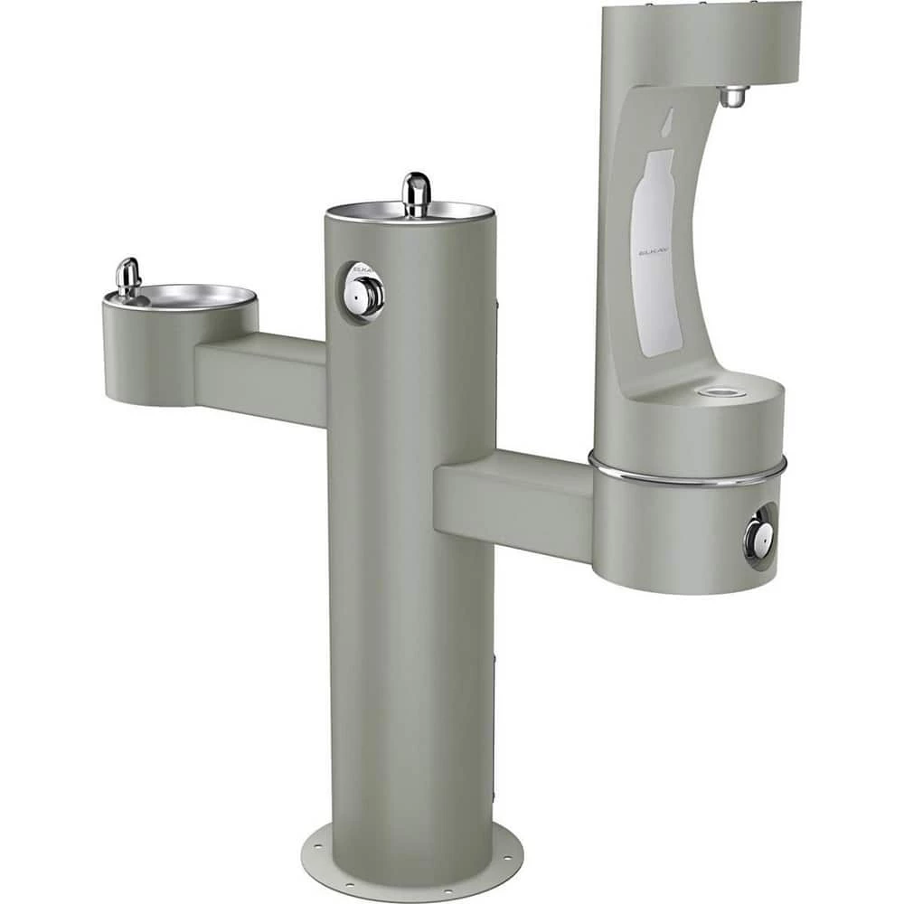 Elkay Outdoor Floor Mount or Freestanding Stainless Steel Outdoor Tri-Level Pedestal Bottle Filling Station in Grey